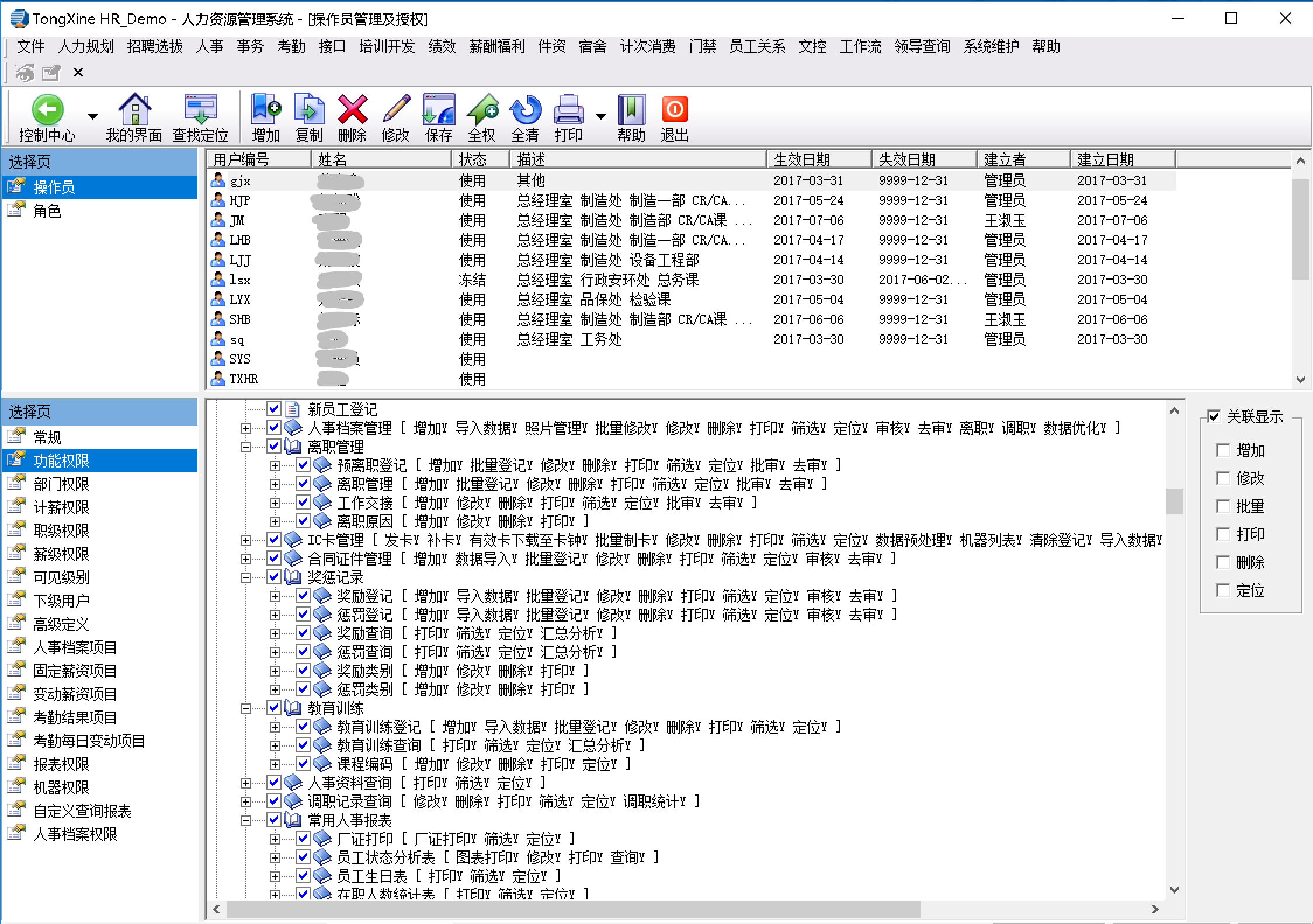針對此種情況,同鑫HR系統(tǒng)結(jié)合眾多用戶的經(jīng)驗,設(shè)置了各種不能的權(quán)限管理模式,在分布式權(quán)限控制系統(tǒng)中職位與權(quán)限相結(jié)合,不因人的流動而造成職責(zé)的空缺。并且,既可以統(tǒng)一管理,又明確分工。合理的下放職權(quán),亦可減輕各崗位的工作負(fù)擔(dān)。