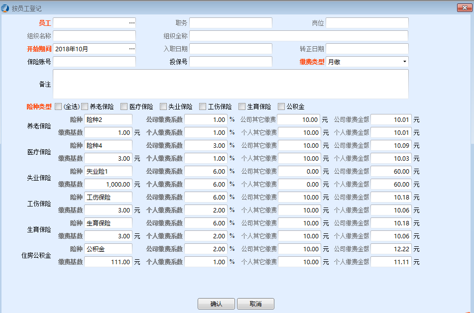 保險數(shù)據(jù)直接關(guān)聯(lián)薪資,自動計算個人繳費及公司繳費金額;