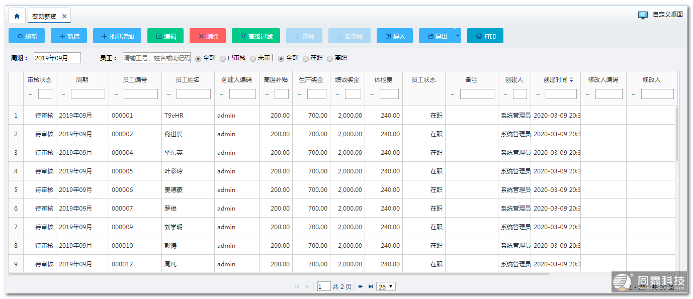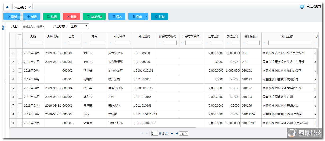 同鑫薪酬管理系統(tǒng)平臺將企業(yè)薪資分為固定薪資和變動薪資,固定工資與員工的職位直接相關(guān),企業(yè)HR人員可以根據(jù)職位的不同設(shè)置不同數(shù)額的固定工資,而變動薪資與員工的考勤、績效有關(guān),這些數(shù)據(jù)也記錄在平臺中,方便了變動薪資的計算。另外,變動工資支持項目擴展,便于企業(yè)增加跟多的獎懲制度。