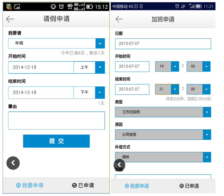 以處理人員考勤為例,員工隨時(shí)通過手機(jī)能查看到本人的考勤異常情況,什么時(shí)候有過遲到,早退現(xiàn)象,加班小時(shí)多少,是否有缺卡,年休假還剩余多少等,統(tǒng)統(tǒng)一目了然,并能自行提交簽卡,請(qǐng)假等申請(qǐng),由管理人員對(duì)申請(qǐng)記錄進(jìn)行審核后,數(shù)據(jù)自動(dòng)進(jìn)入到同鑫eHR系統(tǒng)中參與計(jì)算,做到了數(shù)據(jù)的及時(shí)性和準(zhǔn)確性,也使管理人員擺脫了大量的簽卡和請(qǐng)假數(shù)據(jù)的輸入工作,極大地提高了管理人員的工作效率。
