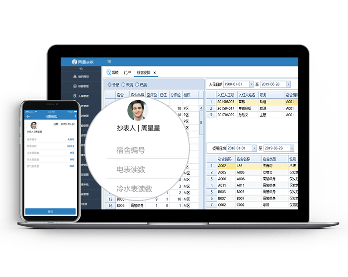 ●自動(dòng)生成宿舍床位編號和上下鋪;● 可視化的宿舍床位管理,綜合顯示已住人數(shù)和空床位數(shù)明細(xì);● 員工從入住到退宿全過程記錄;● 支持宿舍物品配置及維修費(fèi)用管理,自動(dòng)計(jì)算分?jǐn)偹娰M(fèi);● 通過APP實(shí)現(xiàn)在線申報(bào)宿舍維修和填抄水電表讀數(shù)。
