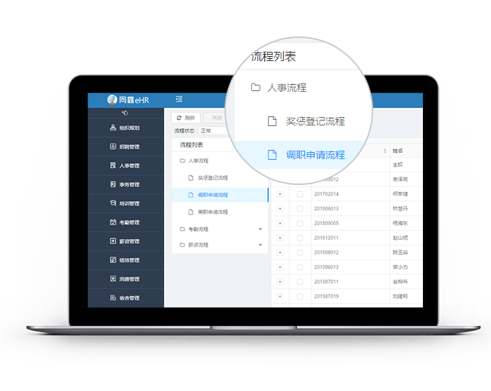 ● 人事系統(tǒng)中員工入轉(zhuǎn)調(diào)離、考勤、調(diào)薪、日常事務(wù)等流程的完全內(nèi)置化;